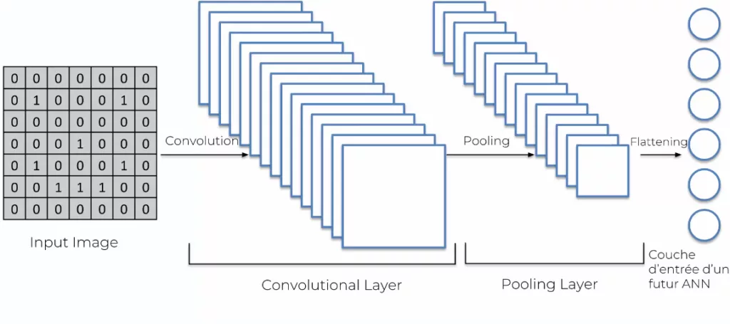 Dans l’article précédent, nous avions vu comment fonctionnait un réseau de neurone artificiel. Si tu n’as jamais entendu parler du fonctionnement, je te conseille de le lire avant de continuer. Comme je l’ai déjà expliqué, même en simplifiant, il y a une partie « technique » et « représentative » que je ne peux pas soustraire à l’explication. Je vais essayer de mettre le plus d’illustration possible pour bien comprendre. Chaque réseau à sa spécialité, ils ont des fonctionnements différents avec des résultats plus ou moins performants. Les réseaux de convolution sont très bons pour l’analyse des images.